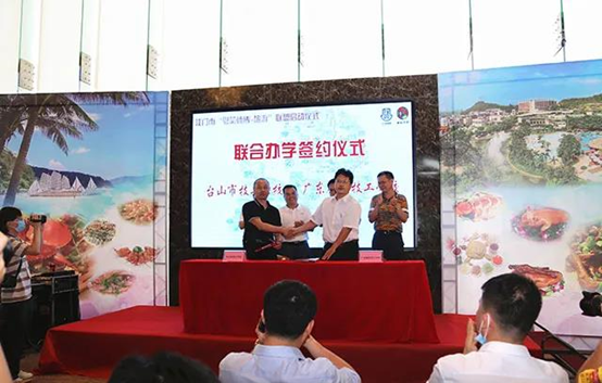 啟動儀式環節中,江門市職業訓練指導中心、江門市職業技能鑒定指導中心、江門五邑餐飲行業協會、江門市烹飪協會、江門市旅游行業協會、臺山市技工學校、臺山市廚點師協會、臺山市旅游行業協會、臺山粵菜餐飲企業代表等,簽訂了“粵菜師傅+旅游”聯盟《倡議書》,以加強技能培訓為抓手、以培養“粵菜師傅”人才為重點,各司其職、各盡其責、協力配合,共同推動“粵菜師傅+旅游”發展。