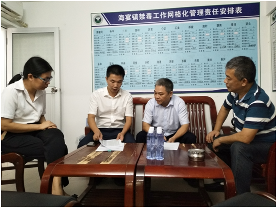 在海宴鎮社區戒毒康復中心,臺山市人力資源和社會保障局局長黃龍飛一行詳細了解當前轄區內開展禁毒工作、吸毒人員分類分級管控及就業情況。充分肯定對口幫扶點禁毒情況清、底數明、工作有針對性。結合人社有關幫扶政策,黃局長指出,吸毒人員戒斷毒癮后若沒有就業扶持和技能培訓、幫扶救助,將成為影響社會治安穩定的主要隱患之一。今后要做好對吸毒人員戒斷毒癮后的職業培訓、就業安置和幫扶救助等工作,用足用活就業扶持和技能培訓幫扶政策,讓全社會對涉毒人員不拋棄、不放棄,促進社會和諧穩定。