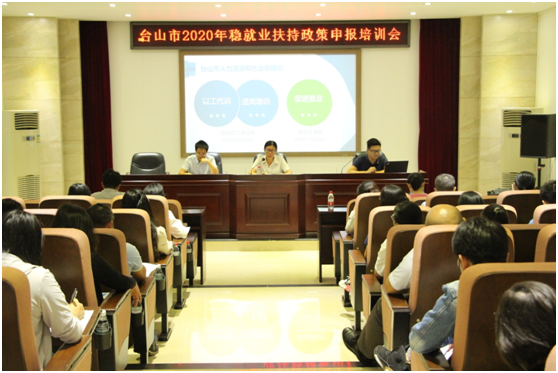10月23日下午,臺山市人力資源和社會保障局、臺山市科工商務(wù)局聯(lián)合舉辦穩(wěn)就業(yè)扶持政策申報培訓(xùn)會議。臺山市人力資源和社會保障局副局長肖雄英、臺山市科工商務(wù)局總經(jīng)濟(jì)師洪坤遠(yuǎn)出席,各鎮(zhèn)(街)經(jīng)促局負(fù)責(zé)人和企業(yè)代表約70人參加了本次培訓(xùn)會。