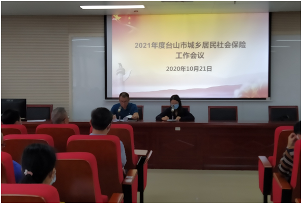 為切實做好我市城鄉居民社會保險各項工作,近日,我局聯合市醫保局、稅務局、社保局在市行政服務中心五樓開標2室召開2021年度臺山市城鄉居民社會保險工作會議。市人社局黨組成員、市社保局局長李勇波,各鎮(街)分管領導、相關職能部門業務負責同志等共80人參加了會議。