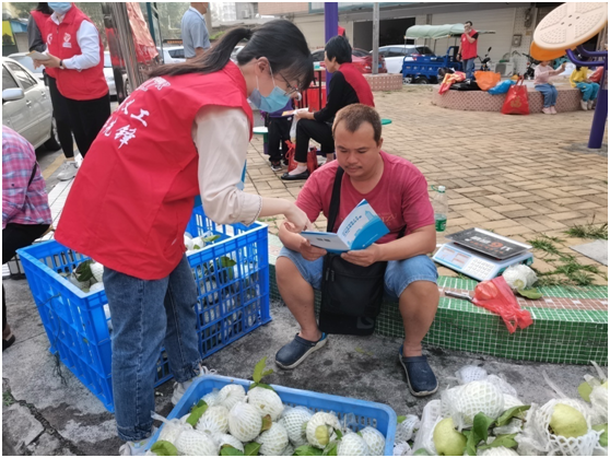活動中,黨員志愿者們走進社區,積極開展人社政策綜合宣傳,向周邊居民派發就業創業手冊、醫保政策手冊以及“粵菜師傅”“廣東技工”“南粵家政”三項工程培訓傳單等宣傳品,詳細地向社區內居民講解社會保險、就業創業和技能培訓等政策,并宣傳勞動保障法律、法規和規章,提供法律咨詢,認真地解答群眾的提問。