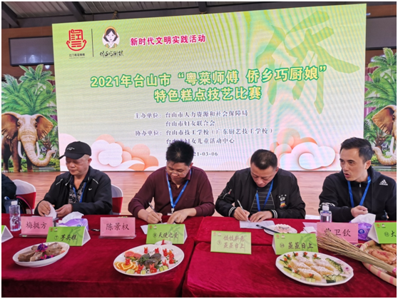 近期,由臺(tái)山市人力資源和社會(huì)保障局和臺(tái)山市婦女聯(lián)合會(huì)聯(lián)合主辦的2021年“粵菜師傅 僑鄉(xiāng)巧廚娘”特色糕點(diǎn)技藝比賽拉開(kāi)序幕,3月6日在臺(tái)山市海宴鎮(zhèn)五豐村第五屆巾幗“僑鄉(xiāng)農(nóng)耕節(jié)”開(kāi)幕式上2021年“粵菜師傅 僑鄉(xiāng)巧廚娘”特色糕點(diǎn)技藝比賽成功舉行,臺(tái)山市市直部門16支代表隊(duì)伍同臺(tái)競(jìng)技,展示了一場(chǎng)美輪美奐的糕點(diǎn)盛宴。臺(tái)山市副市長(zhǎng)靈君、臺(tái)山市人力資源和社會(huì)保障局局長(zhǎng)黃龍飛、臺(tái)山市婦聯(lián)主席藍(lán)翠瓊、海宴鎮(zhèn)鎮(zhèn)長(zhǎng)伍嘉峰等有關(guān)領(lǐng)導(dǎo)出席此次活動(dòng),17個(gè)鎮(zhèn)(街)、臺(tái)山市直有關(guān)單位及相關(guān)社會(huì)團(tuán)體代表約200人參加現(xiàn)場(chǎng)活動(dòng)。現(xiàn)場(chǎng)活動(dòng)此次比賽受到廣泛關(guān)注,臺(tái)山電視臺(tái)等媒體對(duì)此次活動(dòng)進(jìn)行網(wǎng)絡(luò)現(xiàn)場(chǎng)直播。3月8日,在臺(tái)山市水步鎮(zhèn)也舉辦了鎮(zhèn)級(jí)“粵菜師傅 僑鄉(xiāng)巧廚娘”特色糕點(diǎn)技藝比賽,靈君副市長(zhǎng)以及市直部門、鎮(zhèn)有關(guān)領(lǐng)導(dǎo)出席活動(dòng),活動(dòng)同樣吸引了許多群眾參與。