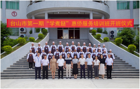 為切實推動黨史學習教育往實處走,促進華僑華人、港澳臺同胞專業技能和就業創業能力提升,5月19日下午,臺山市“粵菜師傅”“學煮餸”惠僑活動培訓班在廣東廚藝技工學校開班。江門市人力資源和社會保障局副局長曹志明、臺山市委常委、統戰部長李白云等出席開班儀式并致辭。