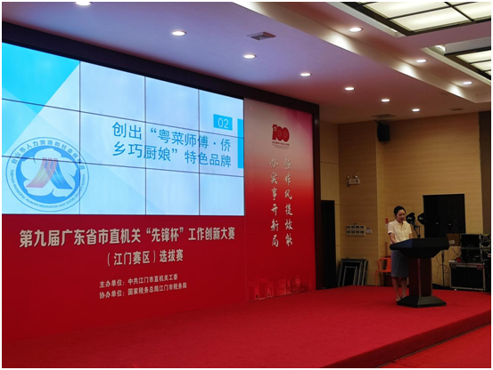 第九屆廣東省市直機關“先鋒杯”工作創新大賽已于于近期拉開了帷幕。7月28日,我局題目為《載體、品牌、基地、交流多管齊下,以“廚藝”促就業走出新路子》的作品經臺山市機關工委推薦,作為臺山四個參賽作品之一參加了江門賽區選拔賽并獲得優勝獎。