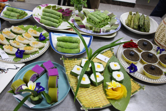 比賽現場氣氛熱烈,參賽選手紛紛拿出“藏身絕技”,精心制作,經過的激烈緊張比拼,五彩繽紛、玲瓏可愛的糕點就出爐了,除了指定作品斑斕條之外,雙色糕、彩虹糕、咸角仔、糯米果、椰汁糕、西米糕、越南卷粉、九層糕等作品外形爭奇斗艷、味道讓人贊不絕口。