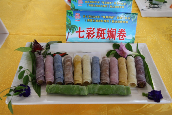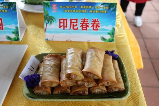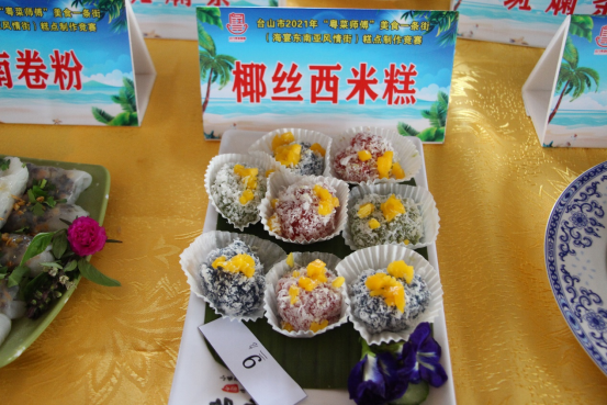 此次活動是繼10月15日在都斛鎮舉辦2021年“粵菜師傅”美食一條街(都斛海鮮街)十大名菜評選活動后又一場貫徹落實《江門市“粵菜師傅”美食一條街建設方案》的具體舉措。賽前市人社局組織廚藝專家對海宴鎮東南亞風味街的餐飲店及其從業人員開展為期4天的“粵菜師傅”專項技能提升培訓,并聯合餐飲店主圍繞街區主打特色糕點,結合海宴鎮的特色香料等食材,從選材、品種、造型和口感進行研制創新。