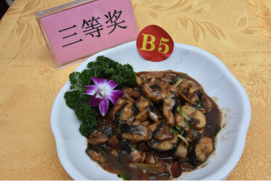 此次比賽由臺(tái)山名菜和臺(tái)山有味飯兩個(gè)項(xiàng)目組成,兩項(xiàng)競賽同時(shí)進(jìn)行,有味飯技能競賽采用抽簽形式,從菜果飯、黃鱔飯、臘味飯中抽取其一進(jìn)行比賽;臺(tái)山名菜技能競賽同樣采用抽簽形式,從子姜炒牛肉、火腩燜鰻魚、沙白燜雞中抽取其一進(jìn)行比賽,評(píng)判標(biāo)準(zhǔn)以色、香、味、形等符合大眾味感為基本原則,比賽采用專家評(píng)分方式進(jìn)行。活動(dòng)現(xiàn)場,參賽選手們拿出看家本領(lǐng),各露絕活。經(jīng)過一番激烈的比拼,最終由鄧建東的子姜炒牛肉獲得臺(tái)山名菜競賽項(xiàng)目的一等獎(jiǎng);陳日華的菜果飯獲得臺(tái)山有味飯競賽項(xiàng)目一等獎(jiǎng)。