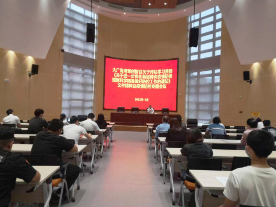 為科學應對當前新冠肺炎疫情防控工作新形勢新變化,壓實防疫主體責任,11月17日,大廣海灣青創智谷關于傳達學習貫徹《關于進一步優化新冠肺炎疫情防控措施科學精準做好防控工作的通知》文件精神及疫情防控專題會議召開。市就業服務管理中心朱德珩主任主持會議,市人社局專技股、職建股、就業股、人才辦及各進駐企業單位負責人參加會議。