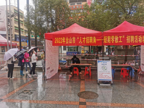 為統(tǒng)籌做好疫情防控和就業(yè)服務(wù)工作,解決短期零散工的用工途徑,實(shí)現(xiàn)“招聘進(jìn)社區(qū)”,11月24日-25日,臺(tái)山市人力資源和社會(huì)保障局分別在臺(tái)城街道辦小公園、臺(tái)山商業(yè)城、興華花園小公園、沿河中路休閑公園、塔山公園前廣場分區(qū)分時(shí)開展2022年臺(tái)山市“短期零散工”現(xiàn)場招聘活動(dòng)。