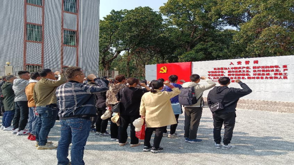 在展館廣場處,全體黨員干部重溫入黨誓詞。面對黨旗和誓詞,大家高舉右拳,莊嚴宣誓。鏗鏘有力的誓言,表達了聽黨話、跟黨走、對黨的忠誠的堅定決心。