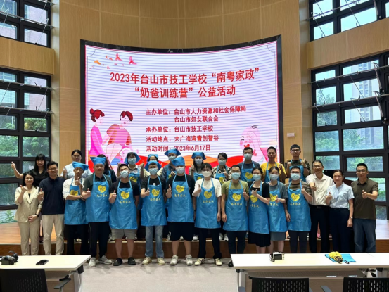 為貫徹江門市關于有序開展各類家政服務專項活動的要求,加深廣大市民對“南粵家政”工程的了解,擦亮“南粵家政”金字招牌。6月17日,由臺山市人社局和臺山市婦聯主辦,臺山市技工學校承辦的2023年臺山市“南粵家政”奶爸訓練營公益活動在青創智谷順利舉辦,活動吸引了十余組準爸爸準媽媽參加。