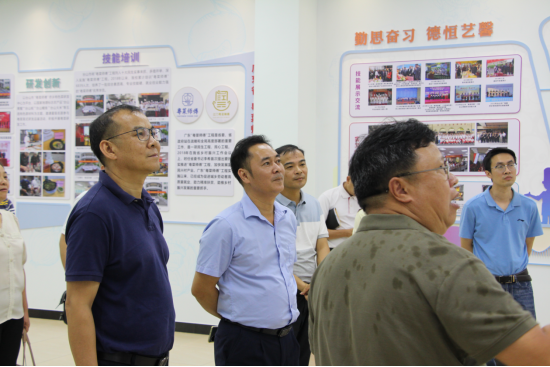 在廣東廚藝技工學校,調研團隊與在場的廚藝培訓班師生對話交流,品鑒學生廚藝,參觀“粵菜師傅”展館,并了解臺山技校新校區的整體規劃、學科設置及招生情況。