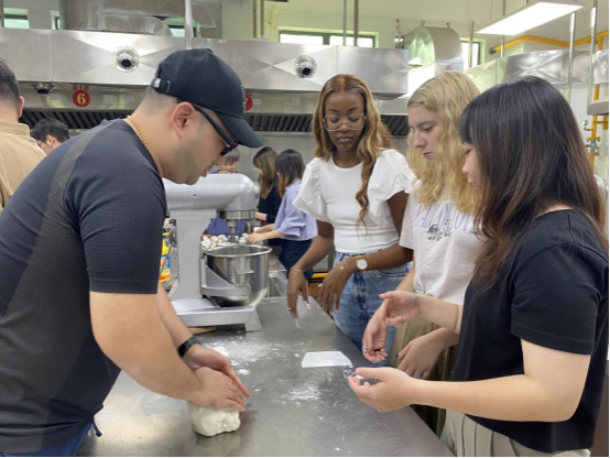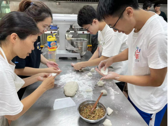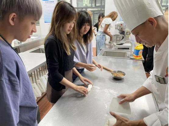 8月13日,參加臺山市“菁英聚臺山 筑夢大灣區”2023年澳門青年人才研學體驗活動的30多名青年走進廣東廚藝技工學校,在老師的手把手指導下,動手“學煮餸”,制作臺山特色點心咸雞籠,品嘗臺山特色黃鱔飯,親身體驗僑鄉獨特的飲食文化,加深對臺山的城市認同和情感認同。