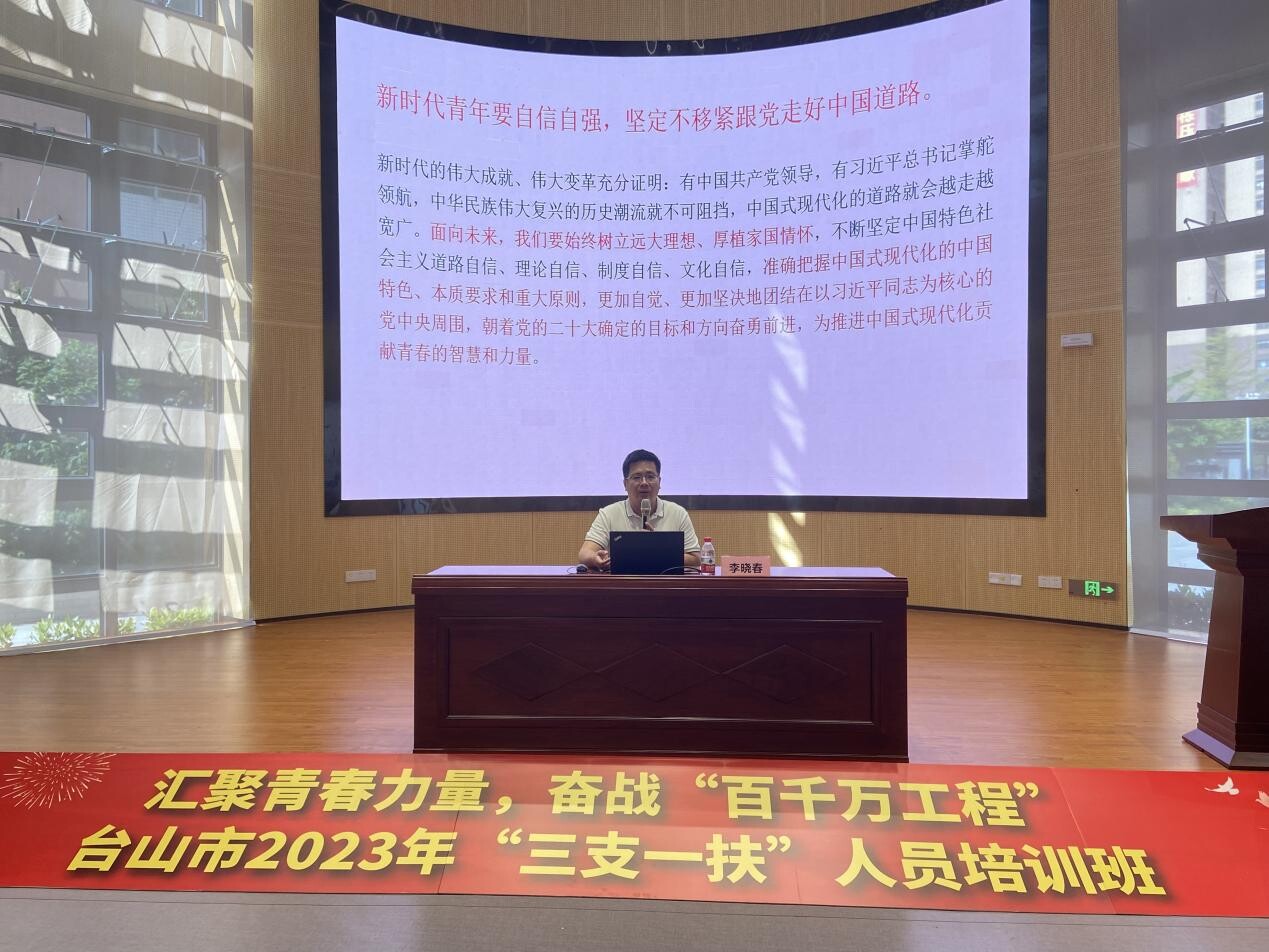 此次培訓為期3天,培訓內(nèi)容豐富,理論與實踐相結(jié)合。課堂授課設置了黨的二十大精神、職業(yè)規(guī)劃和職業(yè)道德建設等專題課程;現(xiàn)場教學以黨建為切入點,結(jié)合支教、支醫(yī)和鄉(xiāng)村振興等主題,組織學員前往大江、赤溪、都斛等地進行深度研學,旨在進一步提高在崗“三支一扶”人員的基層服務能力,幫助他們增強黨建意識、深入了解臺山和大廣海灣經(jīng)濟區(qū)的發(fā)展前景,鼓勵他們扎根基層,為實施“百千萬工程”貢獻自己的青春力量。