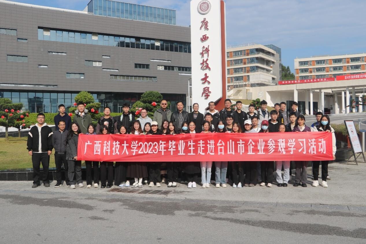 為進一步促進高校畢業生高質量就業,發揮人才供給基地作用,同時深化政校企合作,11月17-18日由廣西科技大學學生工作部部長陳克文帶隊,經濟管理學院、機械與汽車工程學院、土木建筑工程學院、生物與化學工程學院、電子工程學院、大學生就業指導中心等相關領導老師以及畢業班學生共同組成調研交流團前來臺山進行調研交流活動,臺山市人社局局長趙湖濱、副局長肖雄英、就業股、就業服務管理中心、全國博士后創新(江門)示范中心臺山分中心負責人陪同調研交流。