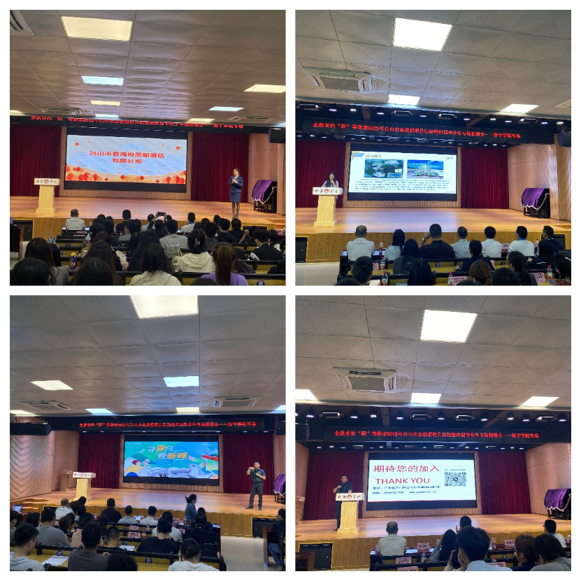 為進一步強化畢業生對企業需求的認識,在新寧學院專場招聘會的同時,我市人社局聯合江門職業技術學院新寧學院組織了臺山市校企對接宣講會,各企業負責人依次對企業的基本概況、招聘崗位、薪酬待遇等內容進行了簡單的介紹。企業負責人們的宣講調動了同學們的求職熱情,同學們踴躍發言,各企業負責人也針對相關問題進行了解答,現場氛圍熱烈。