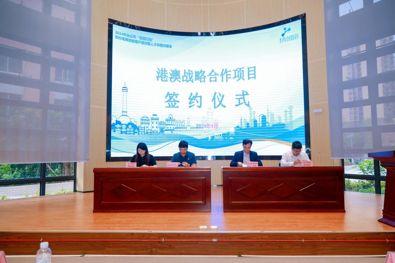 為推動“雙百行動”走深走實,發(fā)揮高校教育資源優(yōu)勢,提升電商從業(yè)人員技能水平,賦能“百千萬工程”,同時搭建電商企業(yè)與從業(yè)人員的交流對接平臺,將人才培養(yǎng)與電商行業(yè)發(fā)展緊密結合。4月18日,由臺山市人力資源和社會保障局和廣東科學技術職業(yè)學院主辦的2024年臺山市“雙百行動”農村電商技能提升培訓暨人才供需對接會在大廣海灣青創(chuàng)智谷順利舉辦。廣東科學技術職業(yè)學院學生工作部部長劉東升,佛山科學技術學院創(chuàng)業(yè)學院副院長吳彩容,粵港澳大灣區(qū)青年創(chuàng)新中心執(zhí)行秘書長、粵港澳大灣區(qū)青年創(chuàng)新與創(chuàng)業(yè)聯盟主席黃恩華,臺山市人力資源和社會保障局局長趙湖濱,臺山市委農辦專職副主任余君培以及臺山市總工會、臺山市科工商務局、臺山市退役軍人事務局、中國郵政集團有限公司臺山市分公司等相關部門單位負責同志出席活動。