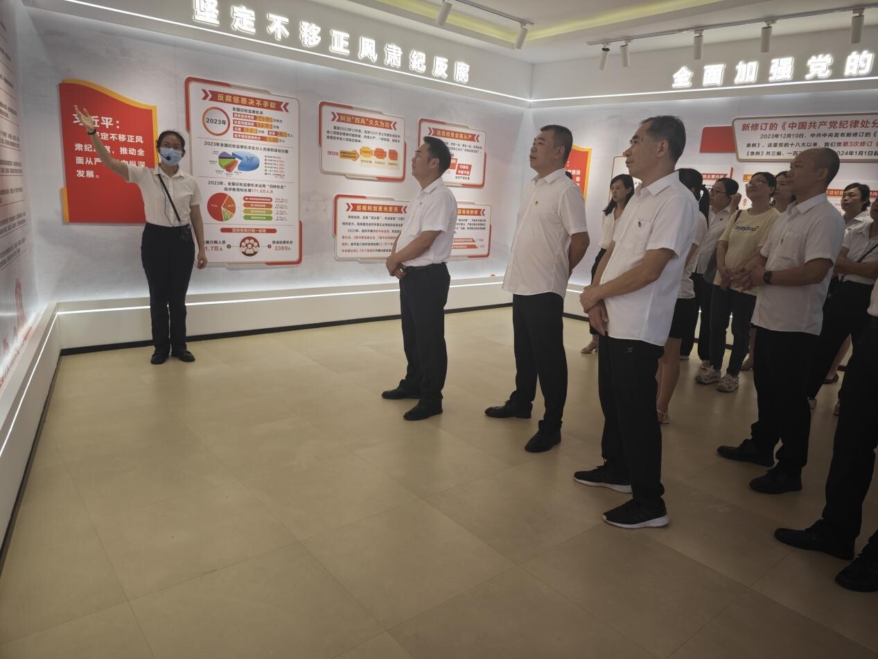 黨員干部們在講解員的引導下參觀了廉政教育基地各個單元的展示內容。在參觀“全面從嚴治黨”單元過程中,黨組書記趙湖濱結合《中國共產黨紀律處分條例》“六大紀律”向在場黨員干部進行一次警示提醒。他提出:人社是民生部門,很多工作都是圍繞群眾和企業服務,特別是對外服務窗口的同志,在工作中務必要嚴守工作紀律和群眾紀律。