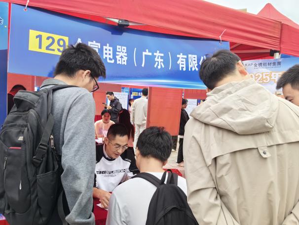 招聘會現場,臺山市人社局相關股室負責人向廣大畢業生展示臺山蓬勃發展的經濟態勢以及豐富的就業機會,并將臺山市經濟社會發展情況、人才政策、就業環境以及發展前景分享給畢業生們;企業代表們主動與廣大青年學子進行了深入交流與互動,詳細向畢業生介紹企業情況,認真聽取畢業生們的職業規劃與就業需求,為他們提供有效的就業建議。
