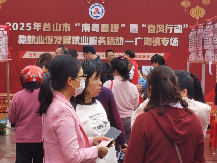 春風送崗暖民心,助力就業“開門紅”。為滿足企業春節后用工需求,促進群眾高質量充分就業,2025年2月6日至2月15日期間,臺山市人社局先后在臺城街道、水步鎮、大江鎮、斗山鎮、沖蔞鎮、四九鎮、廣海鎮等七個鎮街組織開展2025年臺山市“南粵春暖”暨“春風行動”穩就業促發展就業服務活動,把崗位送到群眾家門口,八場線下招聘活動現場火爆、反響熱烈。