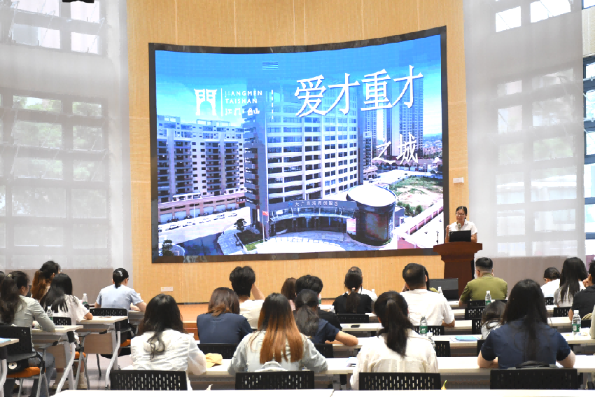 活動現場,臺山市人社局黨組成員、副局長肖雄英通過精彩PPT推介了臺山招才引智的良好氛圍和創新創業環境。市人社局業務骨干詳細解讀了面向港澳青年的就業創業及人才引進政策。