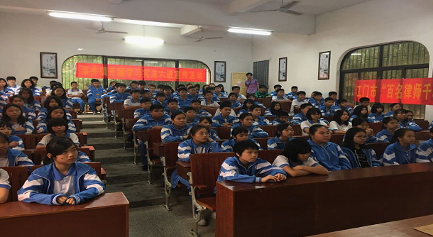 8.4月10日,四九司法所邀請廣東志信律師事務所許曉峰律師到四九鎮學業初級中學,以“新時代文明實踐活動之‘憲法在我心中’暨‘國家安全進校園’”為主題開展法治宣傳講座,全校近一千二百多名師生參與到本次講座中。活動中,許律師以與學生息息相關的典型案例闡釋了憲法及校園安全的重要性,教育學生要做一名尊法懂法守法公民,配合許律師的課程,四九司法所在現場向在校師生贈送法律法規書籍和宣傳小冊子,加強學生學法意識。學校劉日祥校長表示學生在本次活動中收益良多,活動取得良好的法律宣傳教育效果。
