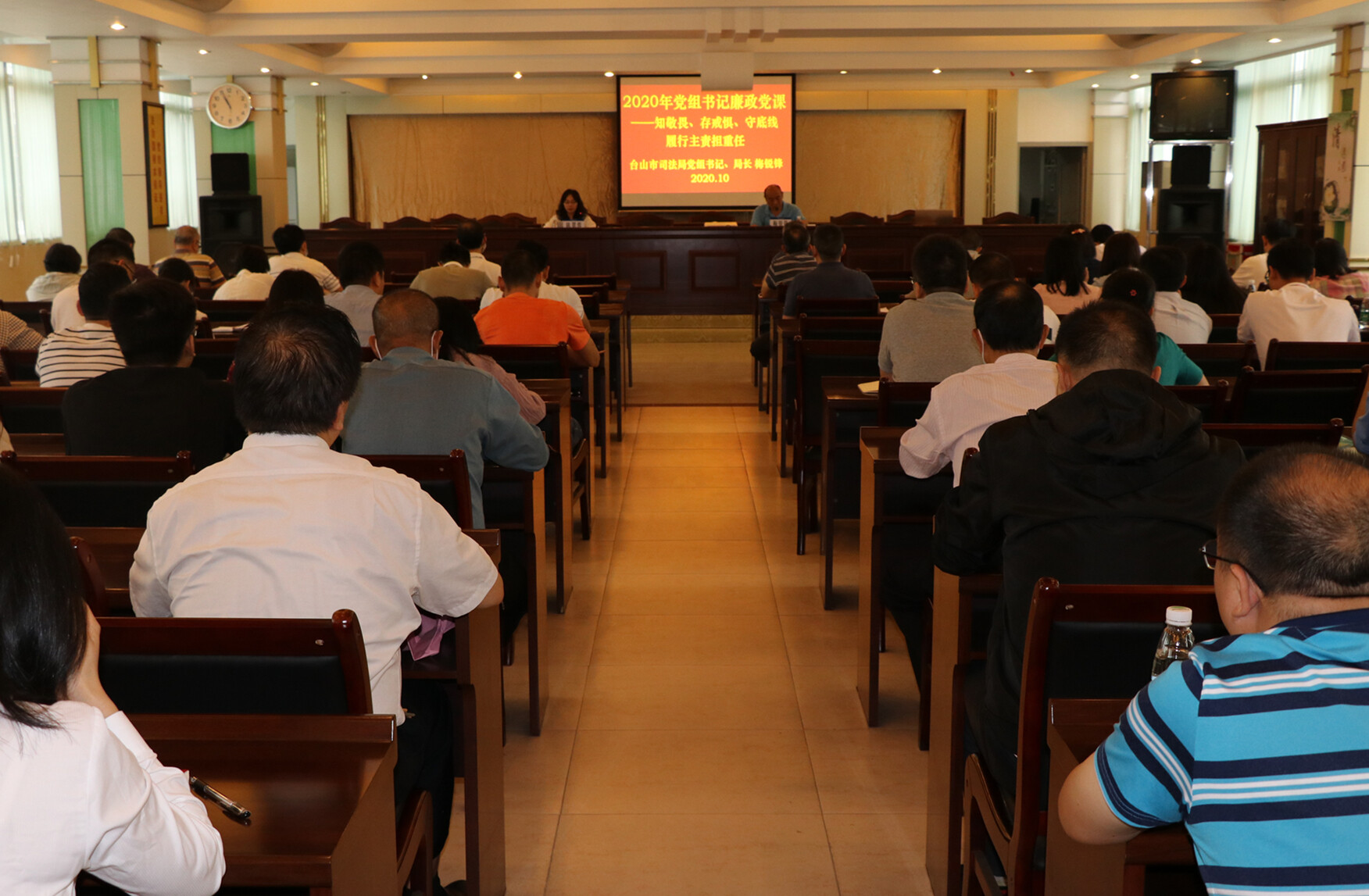 近日,我局召開主題黨課,會議由局黨組成員、政工辦主任陳翠蓉同志主持,由局黨組書記、局長梅銳鋒同志作專題授課,著力推動黨風廉政教育常態化制度化,營造風清氣正的政治生態。會議以遠程視頻的形式開到各司法所,全市司法行政系統全體干部職工共150多人參加會議。