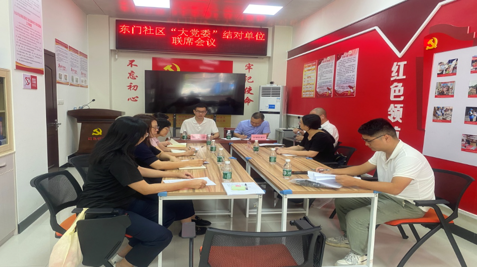 參加東門社區“大黨委”聯席會議,落實“雙報到、雙服務”工作,為社區建言獻策,推動“組織共建、黨員共管、陣地共用、活動共辦、雙贏共進”,解決群眾的“急難愁盼”問題。