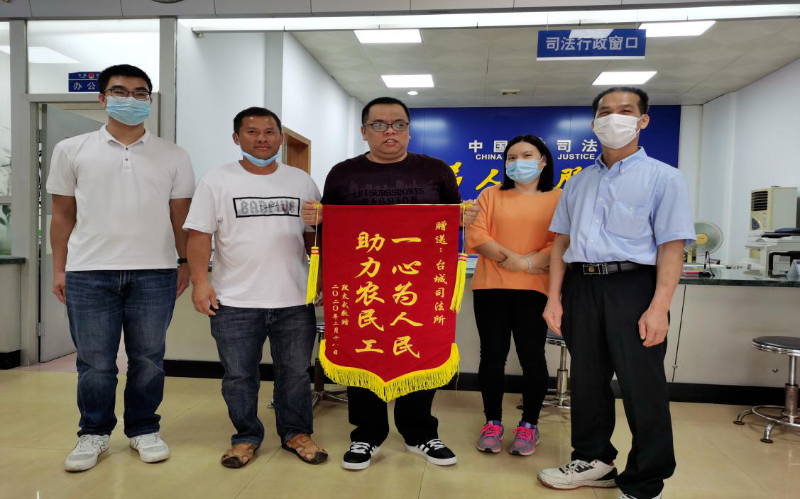 “太感謝了!感謝你們的耐心調解,謝謝辛苦付出!”近日,農民工代表段某拿著一面繡著“助力農民工,一心為人民”的錦旗來到臺城司法所,向工作人員當面表達謝意。