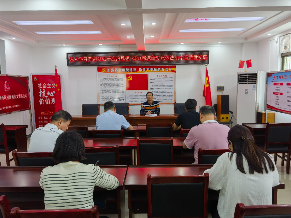 在沖蔞鎮(zhèn)西坑村委會(huì)黨建活動(dòng)室,支部黨員參觀學(xué)習(xí)和了解村委會(huì)黨建開展情況。同時(shí),支部在此開展“每月一講”專題黨課,由局黨組成員、副局長馮宏略同志講授“深入學(xué)習(xí)貫徹習(xí)近平法治思想 奮力推進(jìn)新時(shí)代依法治市高質(zhì)量發(fā)展”專題黨課。