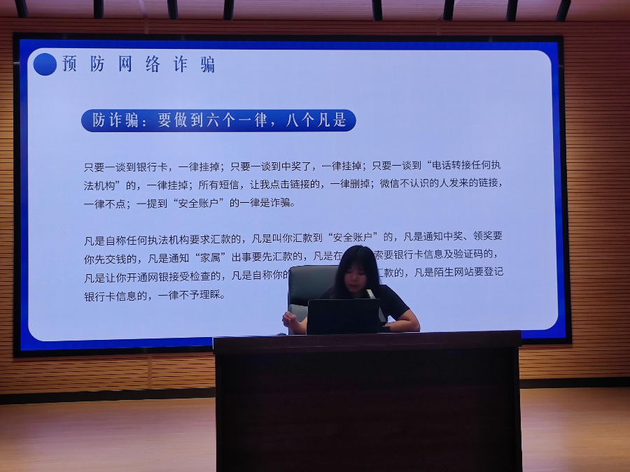 為提高群眾反電信網(wǎng)絡(luò)詐騙能力,結(jié)合“律師進(jìn)企業(yè)每月一小時”公益法律服務(wù)活動與“做黨和人民滿意的好律師”活動,近日,我局聯(lián)合市總工會、市法學(xué)會、市律師協(xié)會臺山市工作小組到廣東鴻特精密技術(shù)(臺山)有限公司開展 “守住群眾人身安全和‘錢袋子’”專題法治宣傳講座,邀請廣東雄軍律師事務(wù)所劉嘉燁律師進(jìn)行授課。