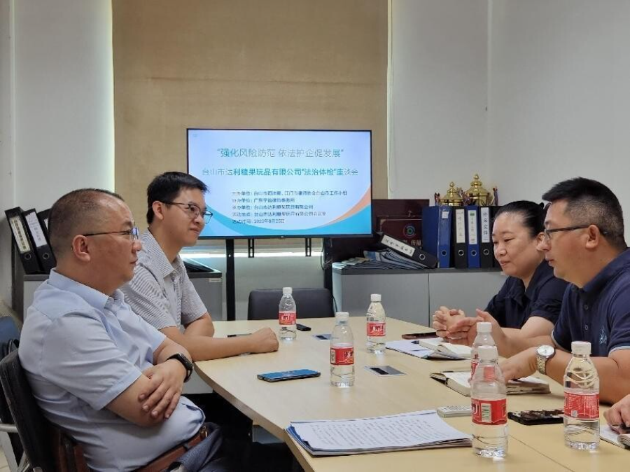 近日,我局在我市外資企業——臺山市達利糖果玩品有限公司(下稱:達利糖果公司)舉辦“強化風險防范?依法護企促發展”法治體檢座談會,并邀請江門律協臺山小組成員、廣東寧盈律師事務所主任陳家欣律師參加。