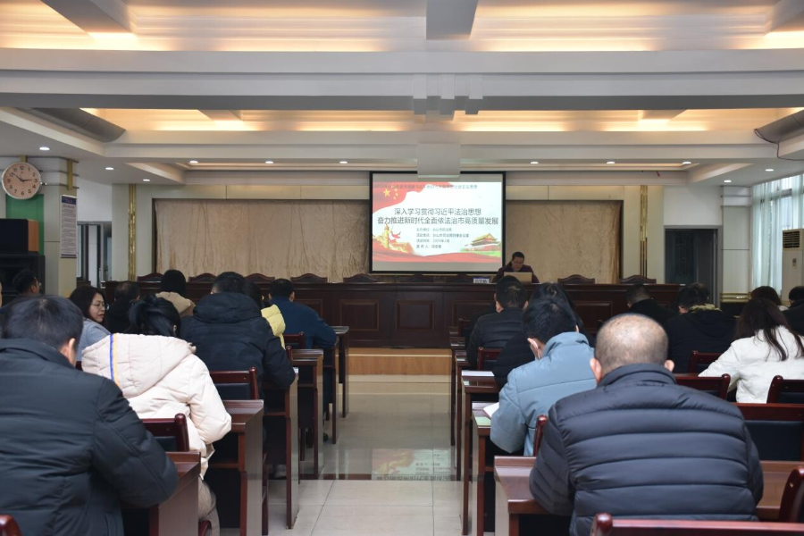 奮力推進新時代全面依法治市高質量發展》為題進行宣講,局領導班子其他成員、各處辦股所負責人、干部職工代表等參加。