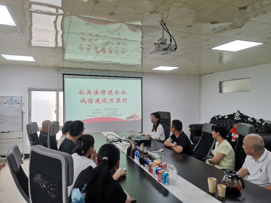 活動中,我局公法股和斗山司法所工作人員結(jié)合企業(yè)發(fā)展中的需求和風(fēng)險點,從合同管理、勞動用工、對外擔(dān)保等方面提供現(xiàn)場法律指導(dǎo),幫助企業(yè)進一步健全法律風(fēng)險預(yù)警機制,圍繞預(yù)防風(fēng)險、解決糾紛提出契合企業(yè)實際的建設(shè)性意見和建議。廣東歌法律師事務(wù)所黃杏儀律師為企業(yè)負責(zé)人和員工代表開展“企業(yè)誠信建設(shè)萬里行”專題講座,與企業(yè)職工面對面、零距離交流,指出綠色食品企業(yè),當(dāng)以誠信經(jīng)營為生存之本,要通過重誠信,保質(zhì)量,守合同去打開產(chǎn)品的銷路,贏得消費者的信賴。同時我局工作人員介紹12348法律服務(wù)熱線,向企業(yè)職工宣傳并發(fā)放《中華人民共和國民法典》《中華人民共和國法律援助法》手冊、村居法律顧問服務(wù)等法律讀本和普法宣傳手冊共計100余份,引導(dǎo)企業(yè)職工做到學(xué)法、知法、守法、用法,進一步提升依法解決問題的意識和能力。活動互動頻繁,氣氛熱烈,取得了良好效果。