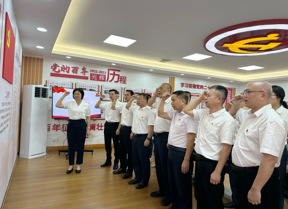 20多名黨員面對鮮紅的黨旗,舉起右手,莊嚴(yán)宣誓:“我志愿加入中國共產(chǎn)黨……”鏗鏘有力的聲音傳達(dá)出了共產(chǎn)黨員的自豪感與使命感,堅(jiān)定了全體黨員立足崗位、守正創(chuàng)新的決心。