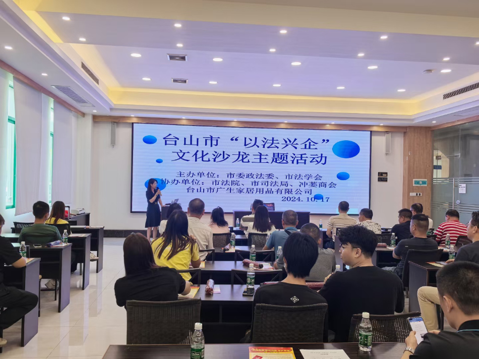 10月17日,我市在廣生家居用品有限公司舉辦主題為“以法興企”的文化沙龍活動,由市委政法委、市法學會主辦,市人民法院、市司法局、沖蔞商會協辦,40余名嘉賓和代表參加。