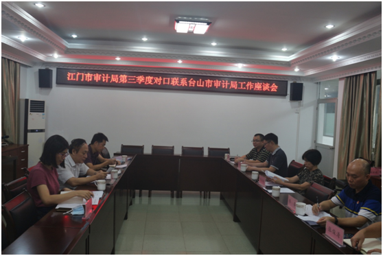 9月22日,江門市審計局二級調研員林偉雄同志帶領法規科和社保科同志到臺山市審計局開展第三季度對口聯系調研工作。審計局全體班子成員及有關股室同志參加了座談會。