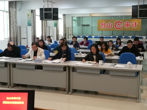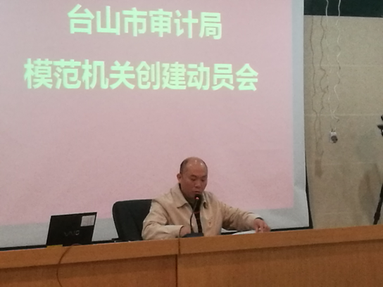 1月16日下午,市審計局黨組成員、副局長陳攀同志主持召開市審計局模范機關創建動員會,傳達學習習近平總書記對推進中央和國家機關黨的政治建設重要指示精神以及《中共臺山市委辦公室印發<關于開展模范機關創建活動方案>的通知》的部署要求,同時就我局學習貫徹工作及有關工作舉措進行全面動員部署。局機關全體黨員干部參加了會議。