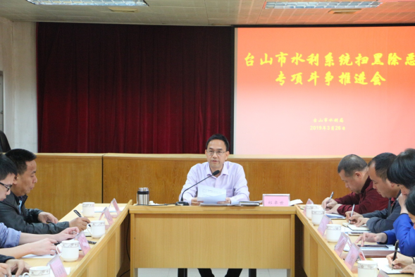 3月26日上午,為進一步推進掃黑除惡專項斗爭,市水利局在局機關七樓召開全市水利系統掃黑除惡專項斗爭推進會。會議由市水利局黨組書記、局長鄭卓世主持,局領導班子,機關各股室、下屬單位負責人參加會議。