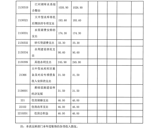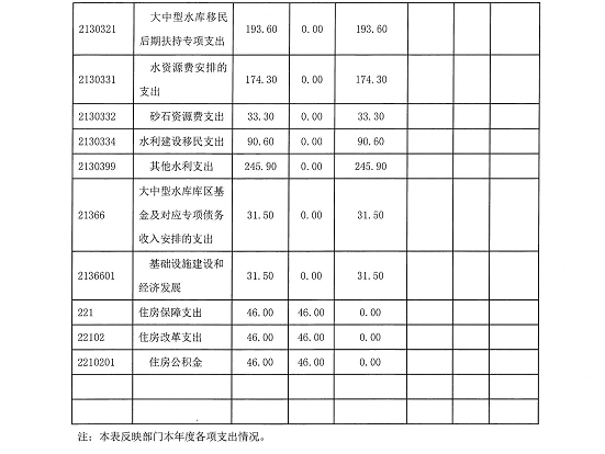 2、社會保障和就業支出1918.68萬元,主要用于對行政事業單位離退費、大中型水庫移民后期扶持基金支出、小型水庫移民扶助基金及對應專項債務收入安排的支出,比上年決算數增加1269.81萬元,增長195.7%,主要原因是移民項目補助及設施建設增加。