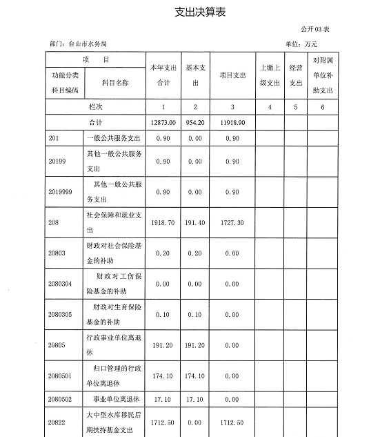 臺山市水務局2016年度總支出12873.01萬元,其中本年支出12873.01萬元,具體情況如下: