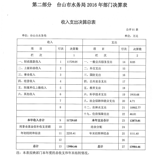 第三部分 臺山市水務局2016年部門決算情況說明第四部分 名詞解釋