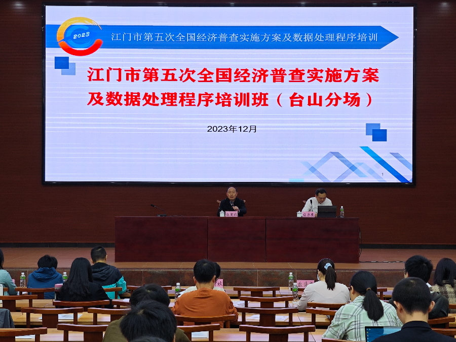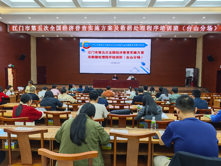 12月15日,江門市統計局聯合臺山市統計局在臺山市委黨校舉辦第五次全國經濟普查實施方案及數據處理程序培訓班,江門市經普辦副主任、統計局黨組成員、三級調研員趙前斌出席培訓班并作動員講話,臺山市經普辦副主任、統計局副局長盤勇康主持開班儀式。臺山市統計局、各園(區)、鎮(街)經濟普查業務骨干80余人參加培訓。