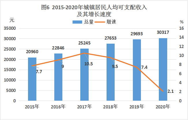 全年城鎮居民人均可支配收入30317元,比上年增長2.1%。