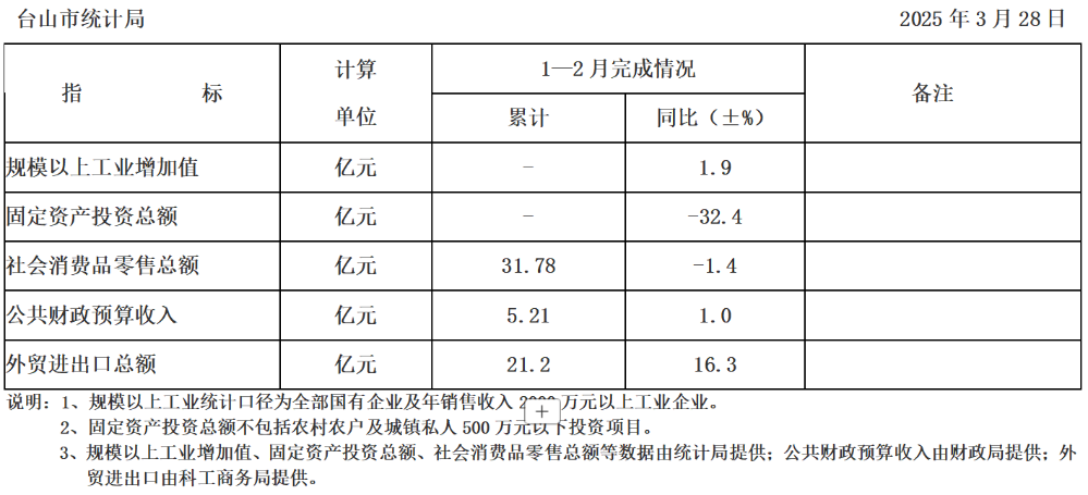 臺山市2025年1-2月主要經濟指標完成情況