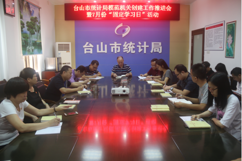 7月25日,臺山市統計局召開模范機關創建工作推進會暨7月份“固定學習日”活動,總結前階段模范機關創建工作,深入查找存在問題和不足,研究部署下階段工作,并深入學習《習近平新時代中國特色社會主義思想學習綱要》(以下簡稱《綱要》)。局機關全體黨員參加了會議。