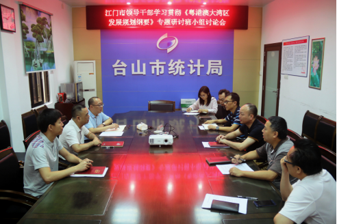 根據(jù)江門(mén)市領(lǐng)導(dǎo)干部學(xué)習(xí)貫徹《粵港澳大灣區(qū)發(fā)展規(guī)劃綱要》專題研討班課程安排,4月18日上午,臺(tái)山市統(tǒng)計(jì)局和國(guó)家統(tǒng)計(jì)局臺(tái)山調(diào)查隊(duì)聯(lián)合組織分組研討,兩個(gè)單位副科級(jí)以上干部共8人參加了會(huì)議,市統(tǒng)計(jì)局黨組書(shū)記、局長(zhǎng)黃衛(wèi)松同志主持會(huì)議。