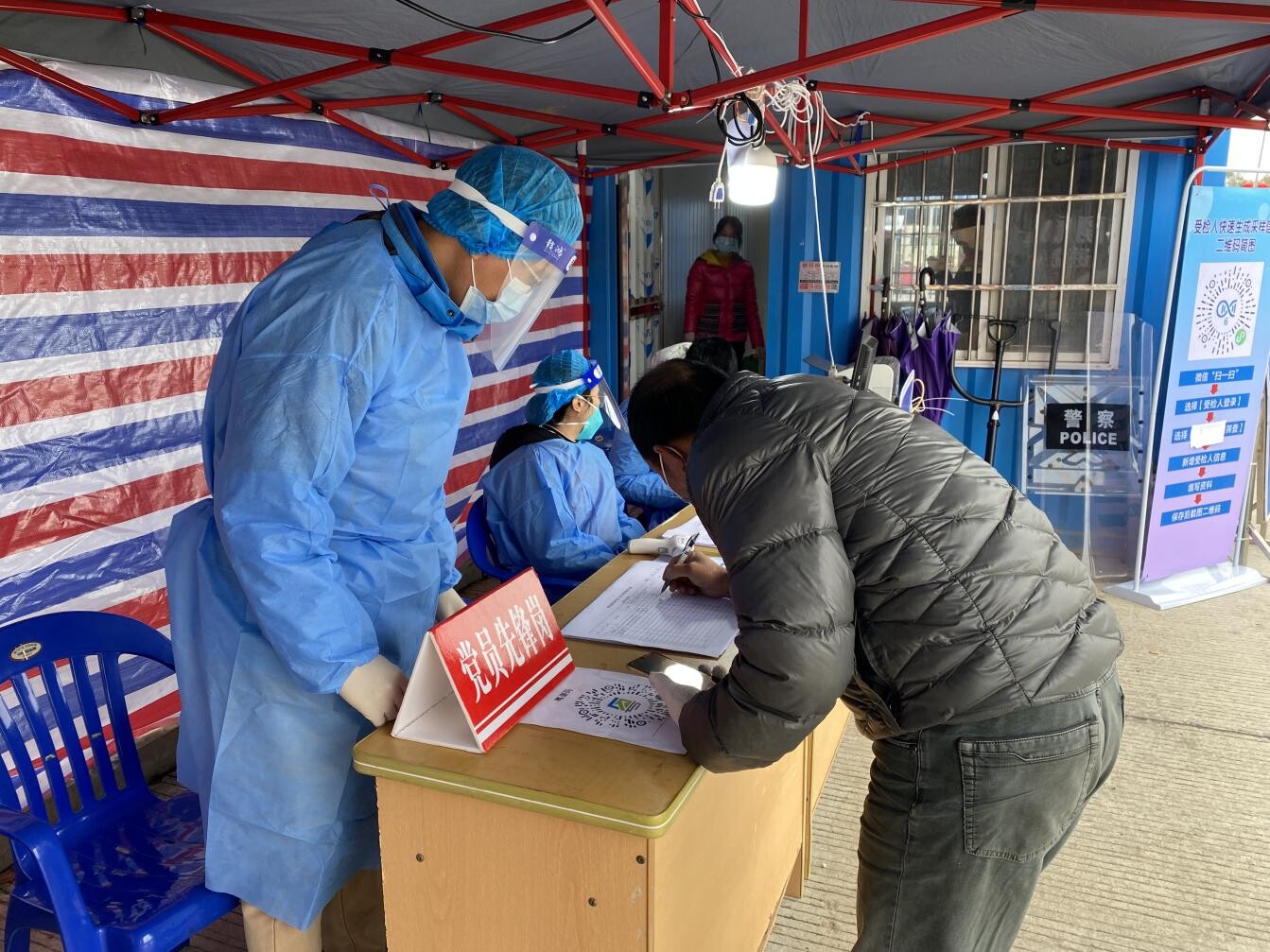 在大江鎮高速路口健康服務點,統計黨員志愿者認真協助防疫工作人員,對進入臺山市的車輛和乘客進行體溫檢測,并核驗其健康碼、行程碼,做好信息登記。當天雖然天氣寒冷,但統計黨員志愿者們不懼嚴寒,堅守防疫一線,為疫情防控筑起一道牢固的“紅色堤壩”。