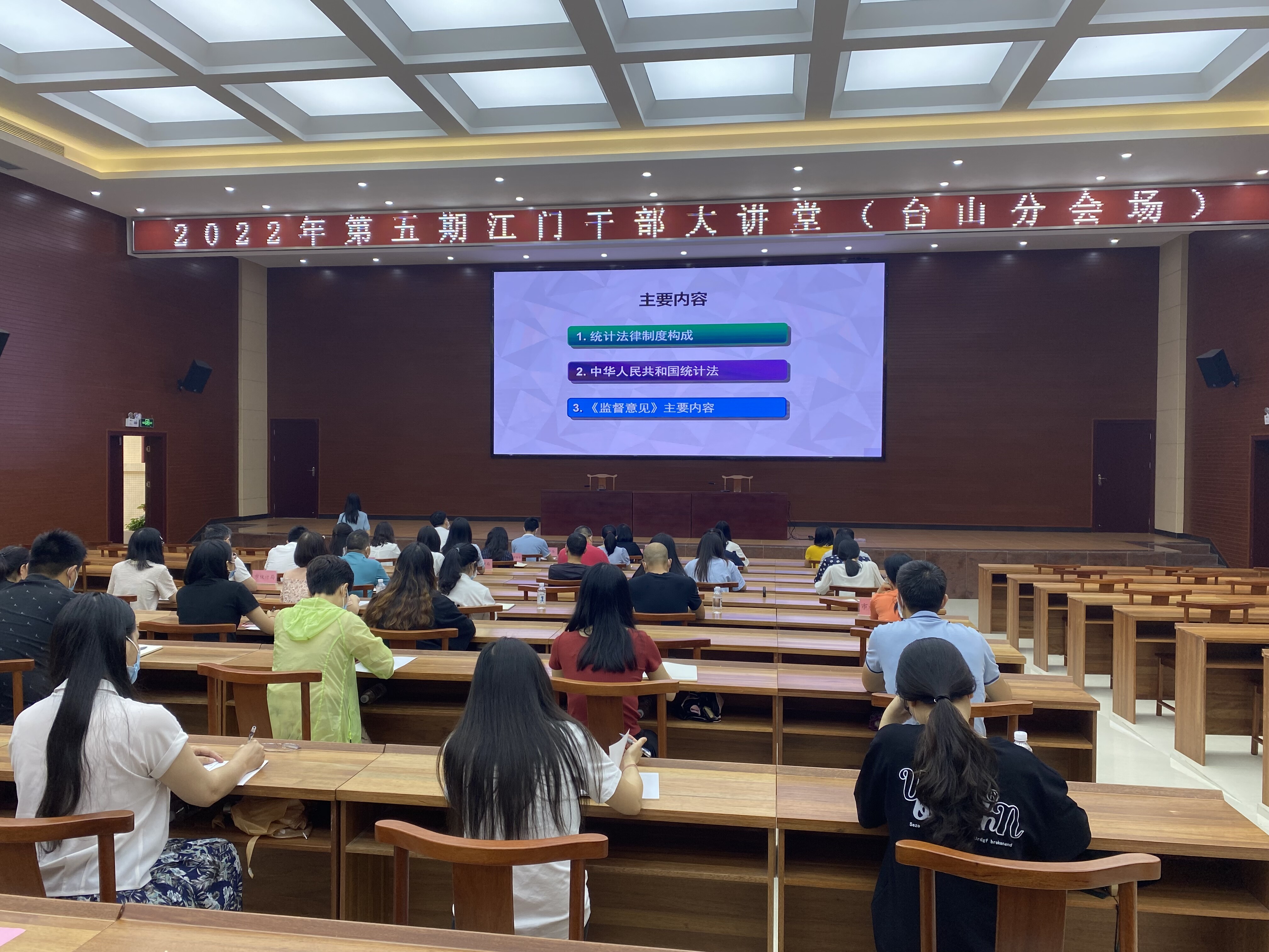 為全面貫徹落實習近平總書記對統計工作的指示批示精神和相關統計法律法規文件,進一步推動《統計法》進黨校,5月31日,我市組織市直各單位干部代表、各鎮(街)機關干部、村(社區)“兩委”干部共601人分別在臺山各分會場收聽收看2022年第五期江門干部大講堂。