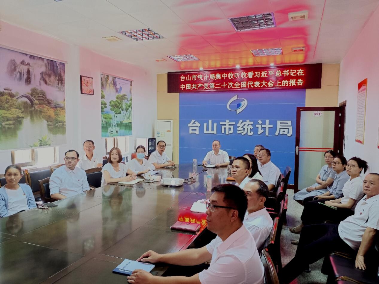通過觀看黨的二十大開幕會盛況,全局黨員干部深受鼓舞,倍感振奮。大家紛紛表示,要認真學習、深刻領會報告精神,把學習宣傳貫徹黨的二十大精神作為當前和今后工作中的首要政治任務,用黨的最新理論成果武裝頭腦、指導實踐、推動工作。真正學出堅定信仰、學出絕對忠誠、學出責任擔當、學出過硬作風、學出能力水平,特別要把學習報告精神與做好統計工作結合起來,緊盯統計數據質量、加強經濟運行監測、做優統計咨詢服務,為推動臺山經濟社會高質量發展貢獻統計力量。